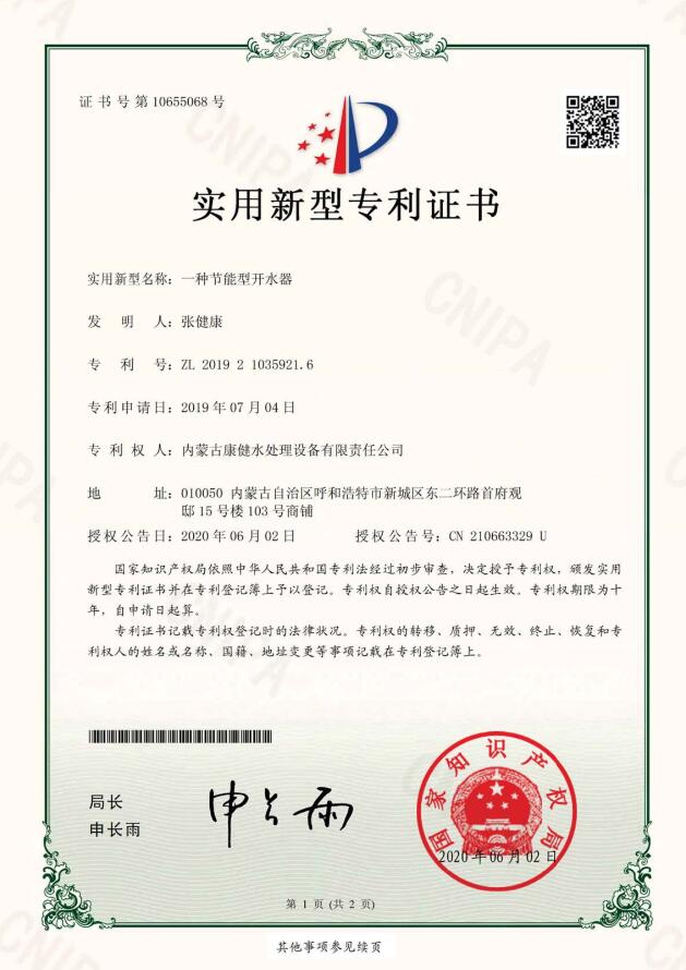 - 內(nèi)蒙古康健水處理設(shè)備有限責(zé)任公司是專業(yè)生產(chǎn)制造水處理設(shè)備、飲料設(shè)備、奶設(shè)備、殺菌設(shè)備、灌裝設(shè)備五大系列90余種配套產(chǎn)品。在反滲透、超濾、納濾、EDI模塊、等膜分離領(lǐng)域有著雄厚的技術(shù)實(shí)力,同時(shí)在水廠設(shè)計(jì)、中水回用、污水處理、分質(zhì)供水、無負(fù)壓變頻供水、鍋爐軟化水設(shè)備等領(lǐng)域有完善的技術(shù)團(tuán)隊(duì)和營銷網(wǎng)絡(luò)。公司坐落在遼闊大草原上美麗的首府——呼和浩特,是內(nèi)蒙古自治區(qū)唯一一家具有自主生產(chǎn)能力的企業(yè)。 “上善若水,水利萬物而不爭”康健水工自成立以來,始終堅(jiān)持“改善水質(zhì)、造福人類、服務(wù)社會(huì)、產(chǎn)業(yè)報(bào)國”的企業(yè)信條,以致力于開創(chuàng)人類綠色健康生活為己任,秉承“關(guān)愛生命、責(zé)任至上”的企業(yè)宗旨,成就了享譽(yù)四方的國內(nèi)知名水處理企業(yè)。 水是生命的源泉、工業(yè)的血液、城市的命脈。水是不可替代的寶貴資源。節(jié)約用水,關(guān)注點(diǎn)滴 為節(jié)約水資源貢獻(xiàn)一份力量, 健康飲水,利在當(dāng)代,功在千秋! 只有在這里,才能領(lǐng)會(huì)水的精髓;只有在這里,才...